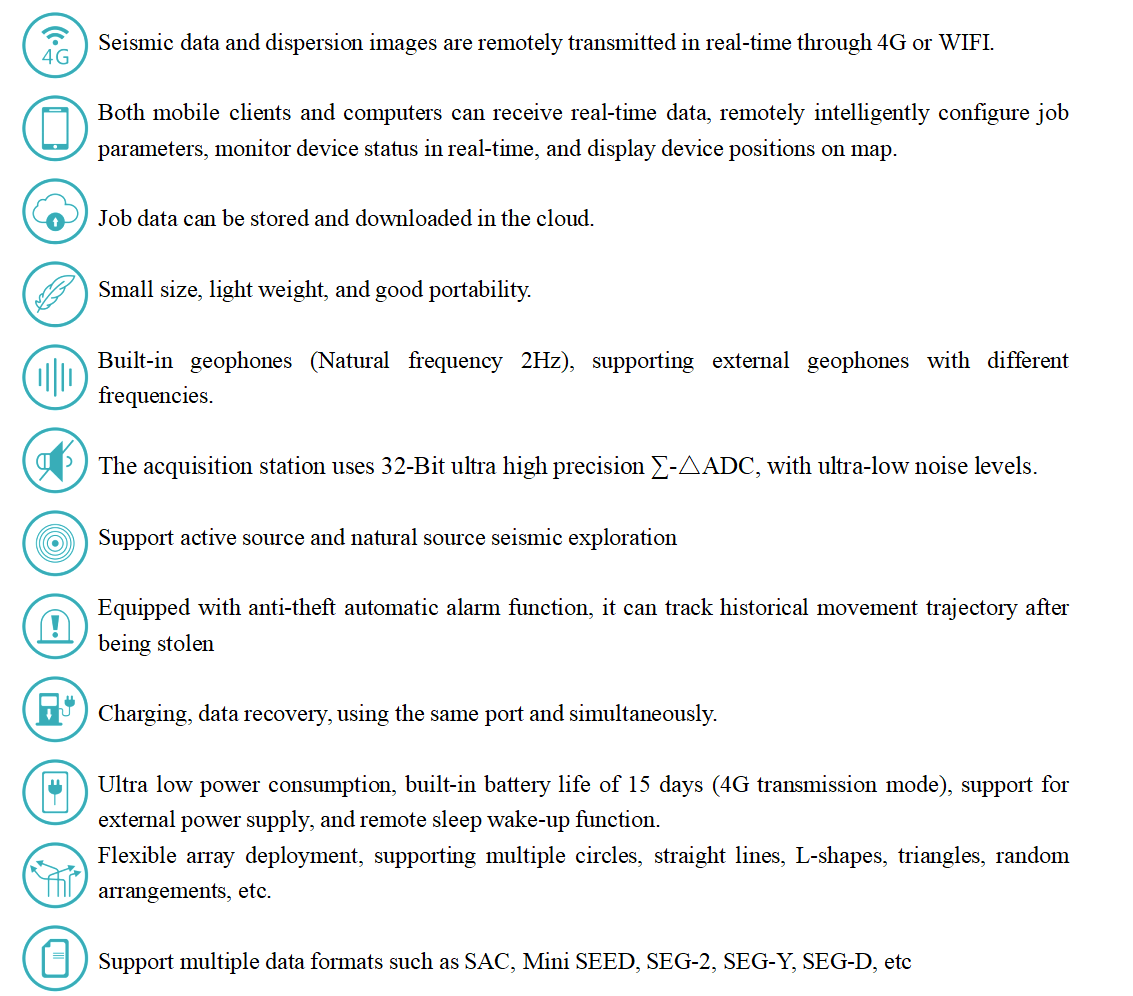 GN309 is an intelligent single-component 2Hz, high-sensitivity and long-distance seismograph specially developed for the detection of geological disasters in urban underground space. The product can transmit 4G/5G long-distance in real time, the built-in battery can work continuously for 15 days, and the external battery pack can work continuously in the field for 150 days. The product's reliability, portability, ease of use, detection accuracy, battery life and other performance indicators have been greatly improved.The device can explore depths from a few meters to more than 6,000 meters. In addition,the super anti-interference ability, efficient construction efficiency and high resolution in the market receive much praise from customers and experts.