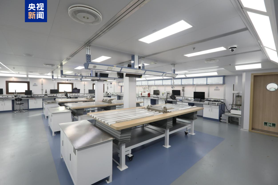 实验室总面积超3000平方米,涵盖海洋科学、微生物、古地磁等九大实验室,采用数字孪生等信息化技术,可实现钻采作业全过程监测、科学实验智能协同。“整艘船一定意义上是可移动的国家实验室,为避免样品运回岸后发生变化,在船上就能进行快速、准确分析。”“梦想”号监造组业务分组组长周洋说。